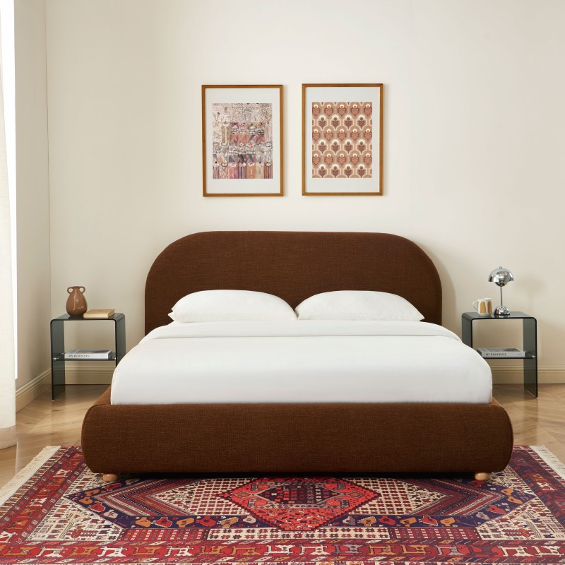 Con le sue linee arrotondate e il rivestimento in tessuto bouclé beige, il letto contenitore JELLY si impone come un elemento elegante e accogliente nella camera da letto. Il suo stile contemporaneo e la sua morbida trama creano un'atmosfera cocooning ideale per uno spazio notte raffinato e confortevole.