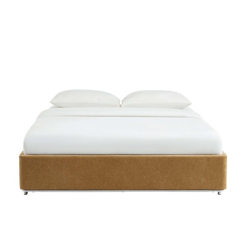 Il letto contenitore MAGGY seduce con il suo rivestimento in tessuto ciniglia, morbido al tatto e raffinato. Con le sue finiture curate e la sua struttura in acciaio, dona un tocco moderno e industriale alla camera da letto.