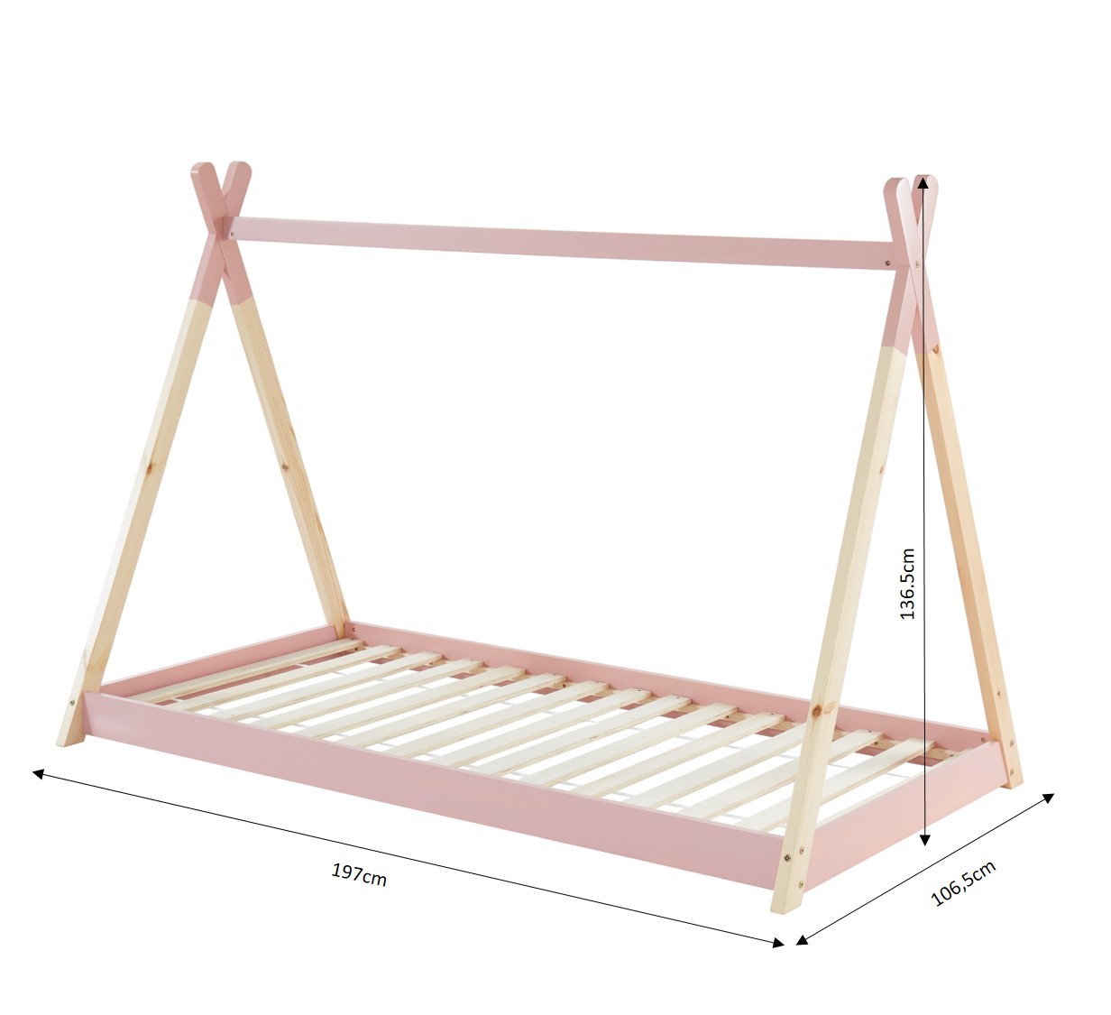 Letto a capanna per bambini TINY in pino rosa con rete inclusa - dimensioni del letto: 197 x 106,5 x 136,5 cm - dimensioni della superficie di riposo: 90 x 190 cm