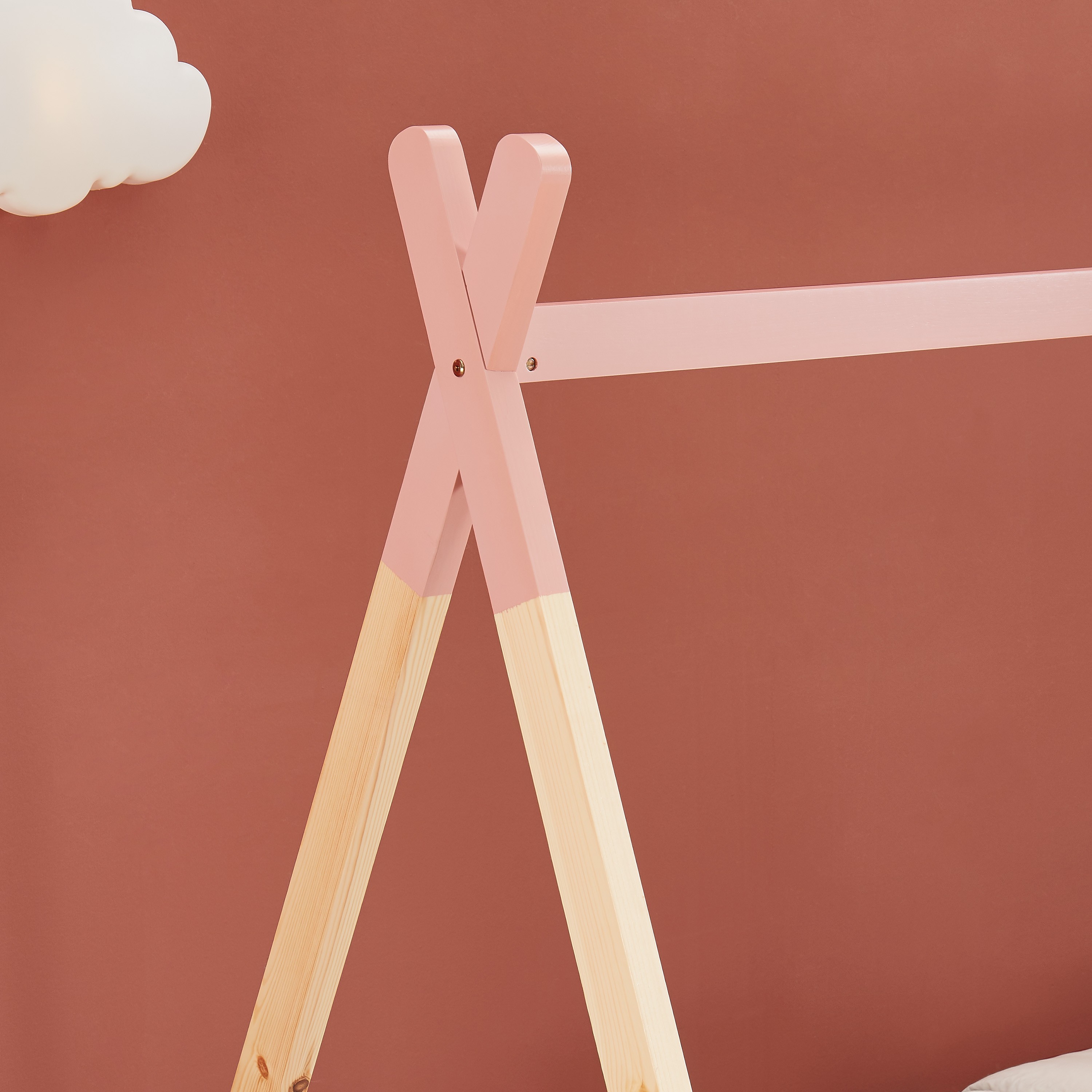 Il letto a forma di tenda TINY si distingue per il suo design originale ed estetico, che darà un tocco di fantasia e fascino alla camera dei vostri bambini. La sua struttura in pino massiccio, rivestita con vernice rosa e vernice protettiva, le conferisce un look intramontabile ed elegante che si integrerà perfettamente con tutti gli stili di arredamento.