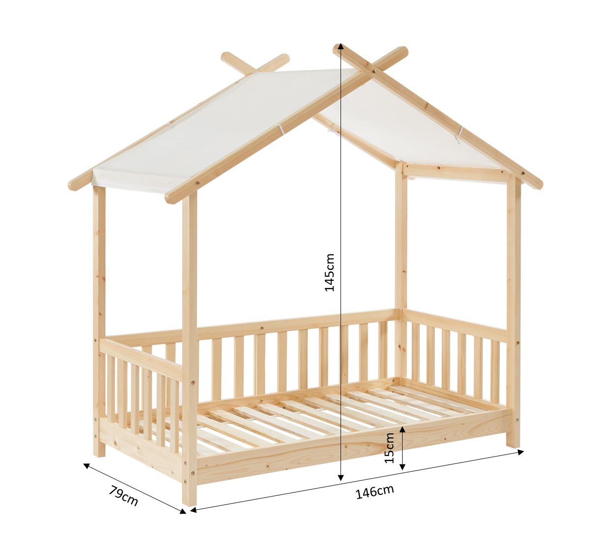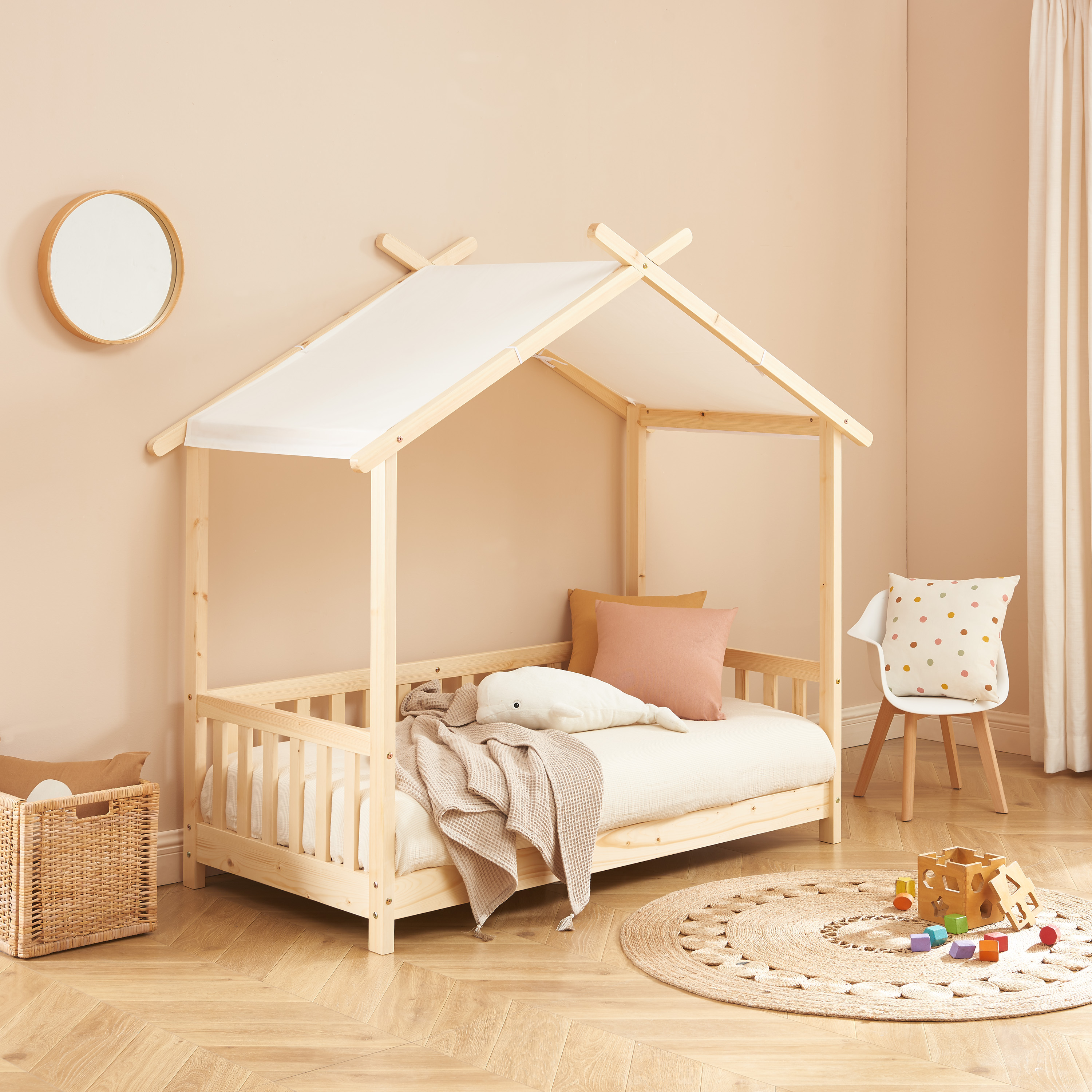 Realizzato in pino massiccio verniciato, il letto a capanna TINY offre una struttura robusta e resistente che resisterà anche ai giochi più intensi. Il legno naturale dona un tocco di calore e fascino alla camera dei vostri bambini, creando un'atmosfera tranquilla e accogliente.