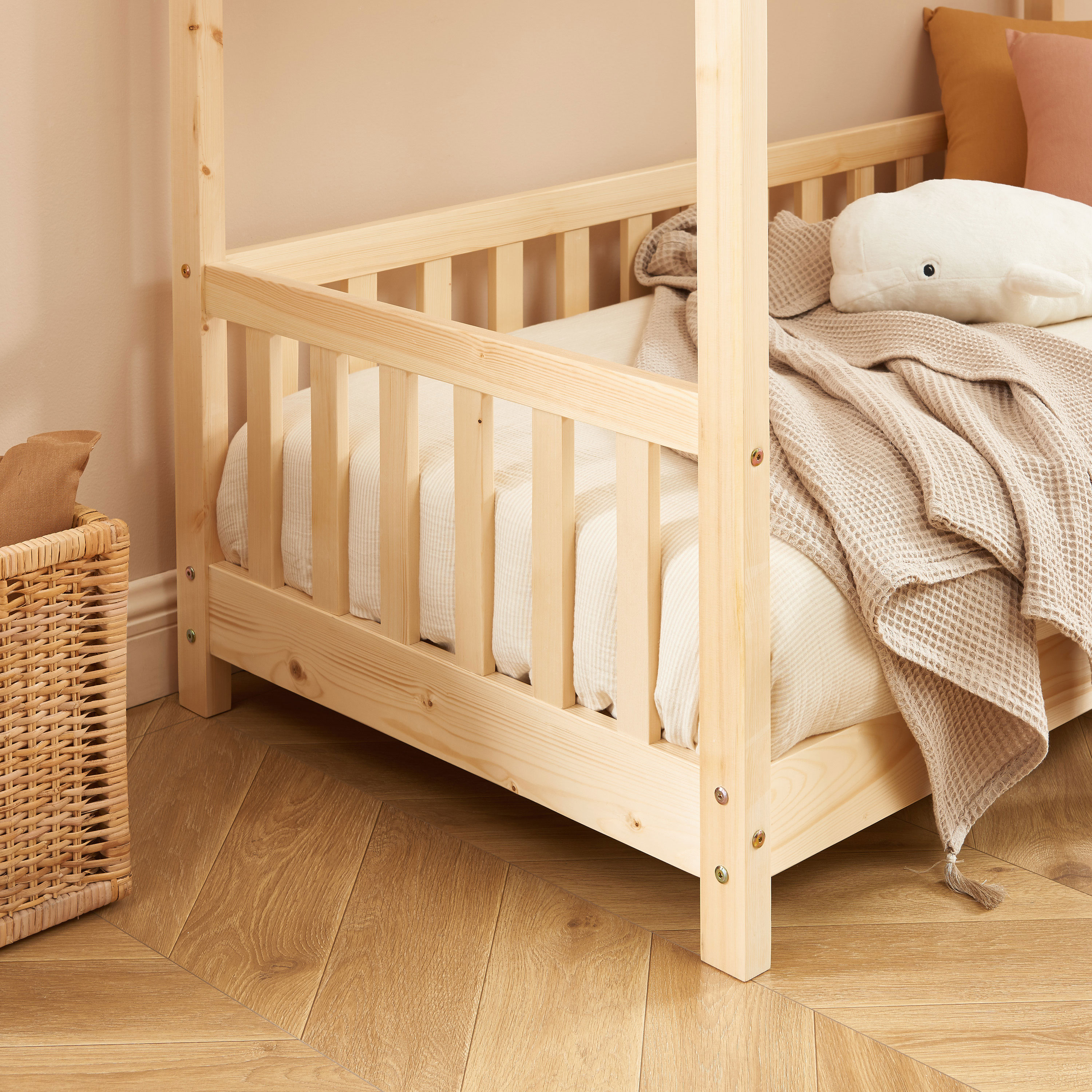 Letto a tenda con sponde TINY 70x140 in pino massiccio con rete inclusa