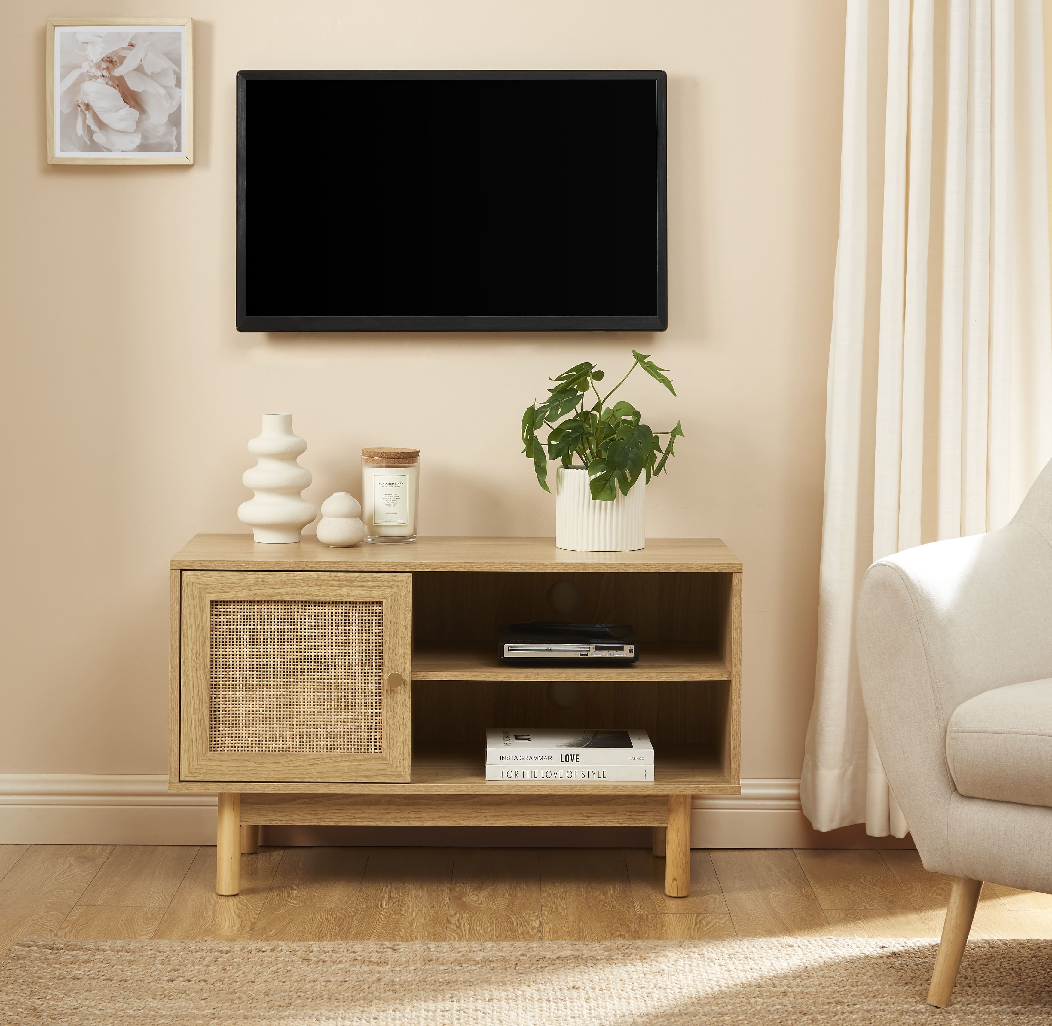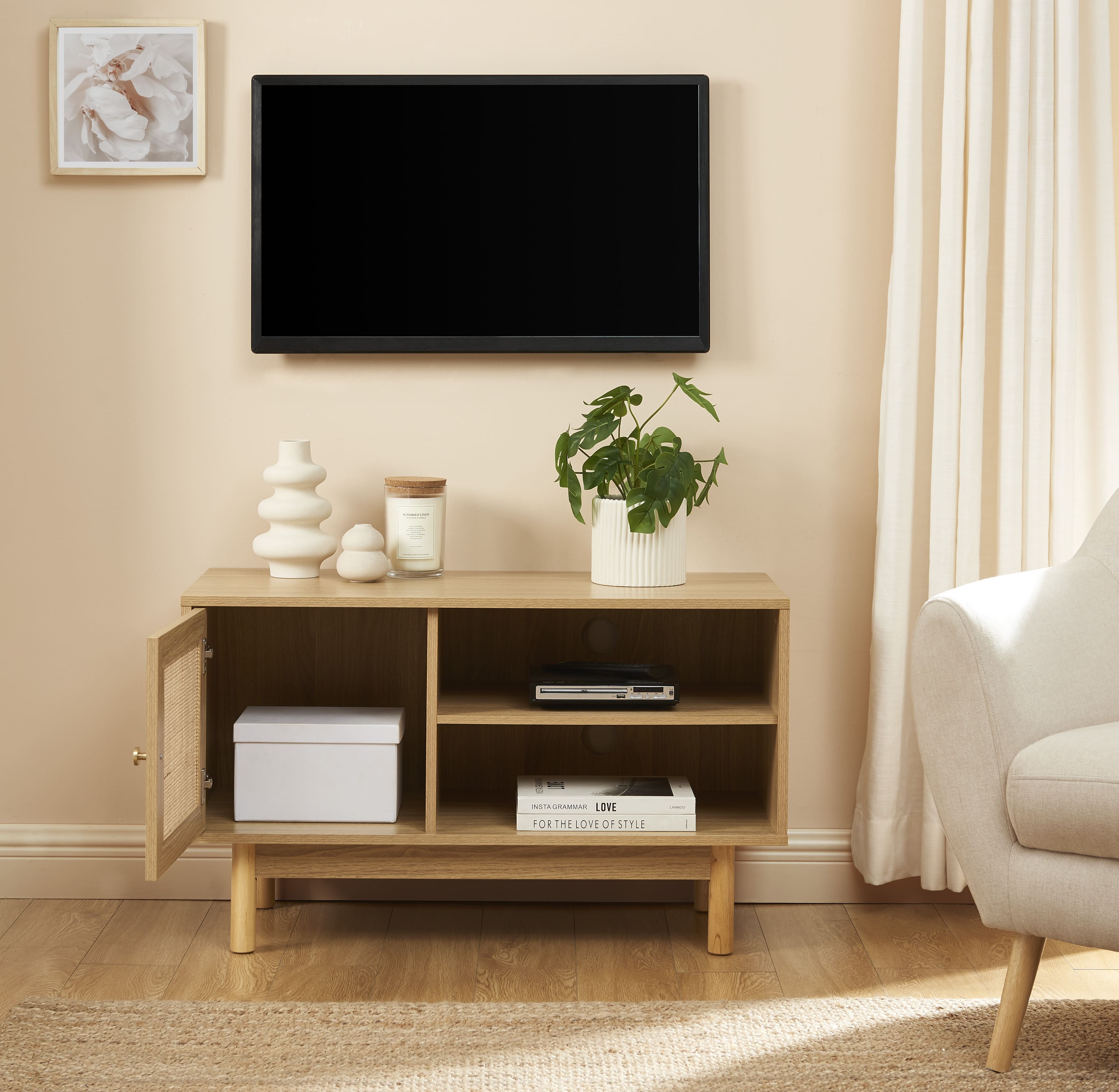 Porta tv HELENA effetto rovere e rattan 90 cm