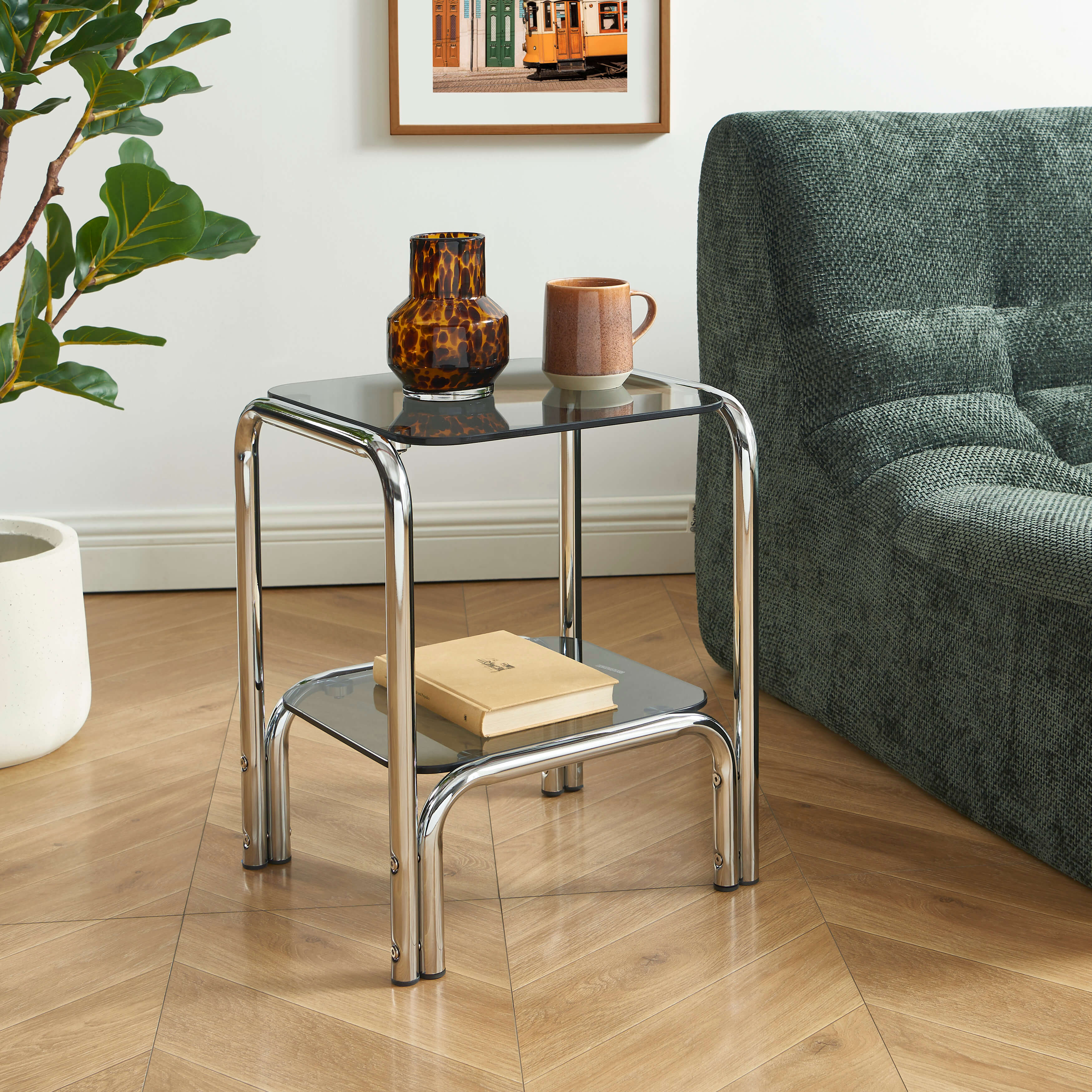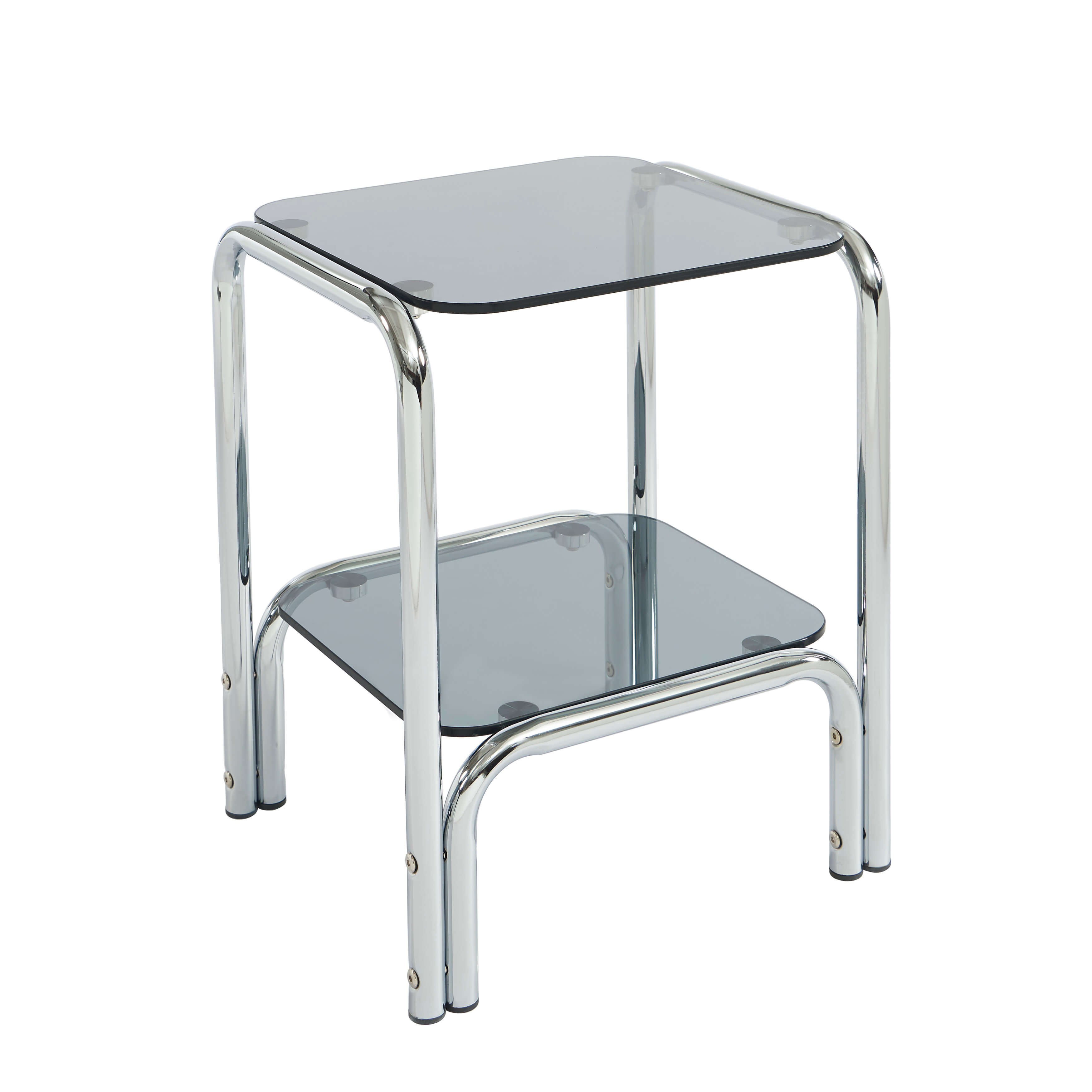 Con le sue dimensioni, il comodino MAGGY è perfetto per ospitare i tuoi oggetti di uso quotidiano: lampada, libro o accessori decorativi. Il suo piano in vetro temperato offre resistenza ed eleganza, mentre la struttura cromata garantisce robustezza e stabilità.