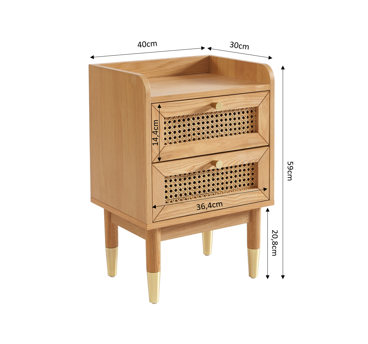 2 cassetti in canna di rattan, questo comodino aggiungerà immediatamente carattere alla sua stanza.