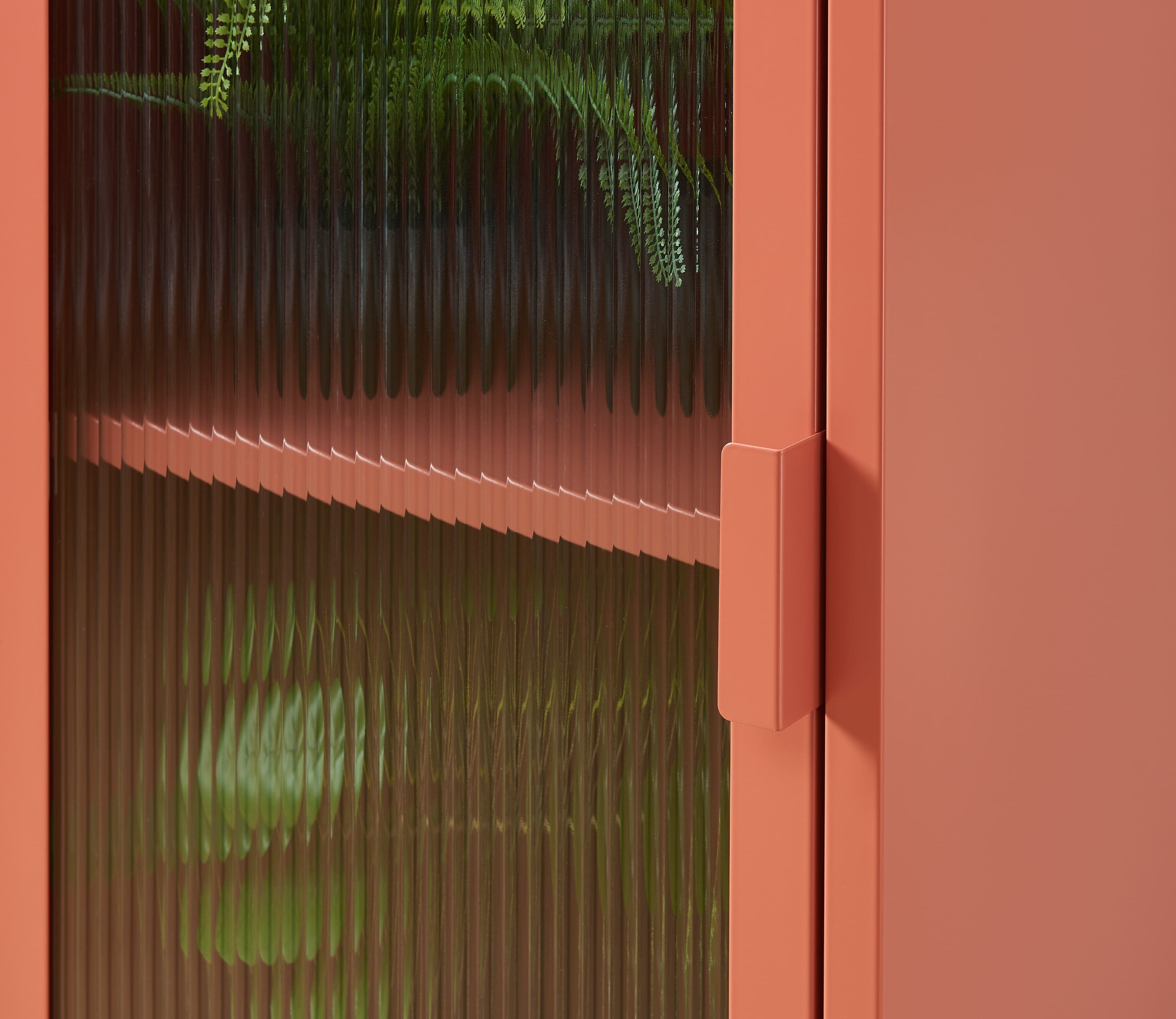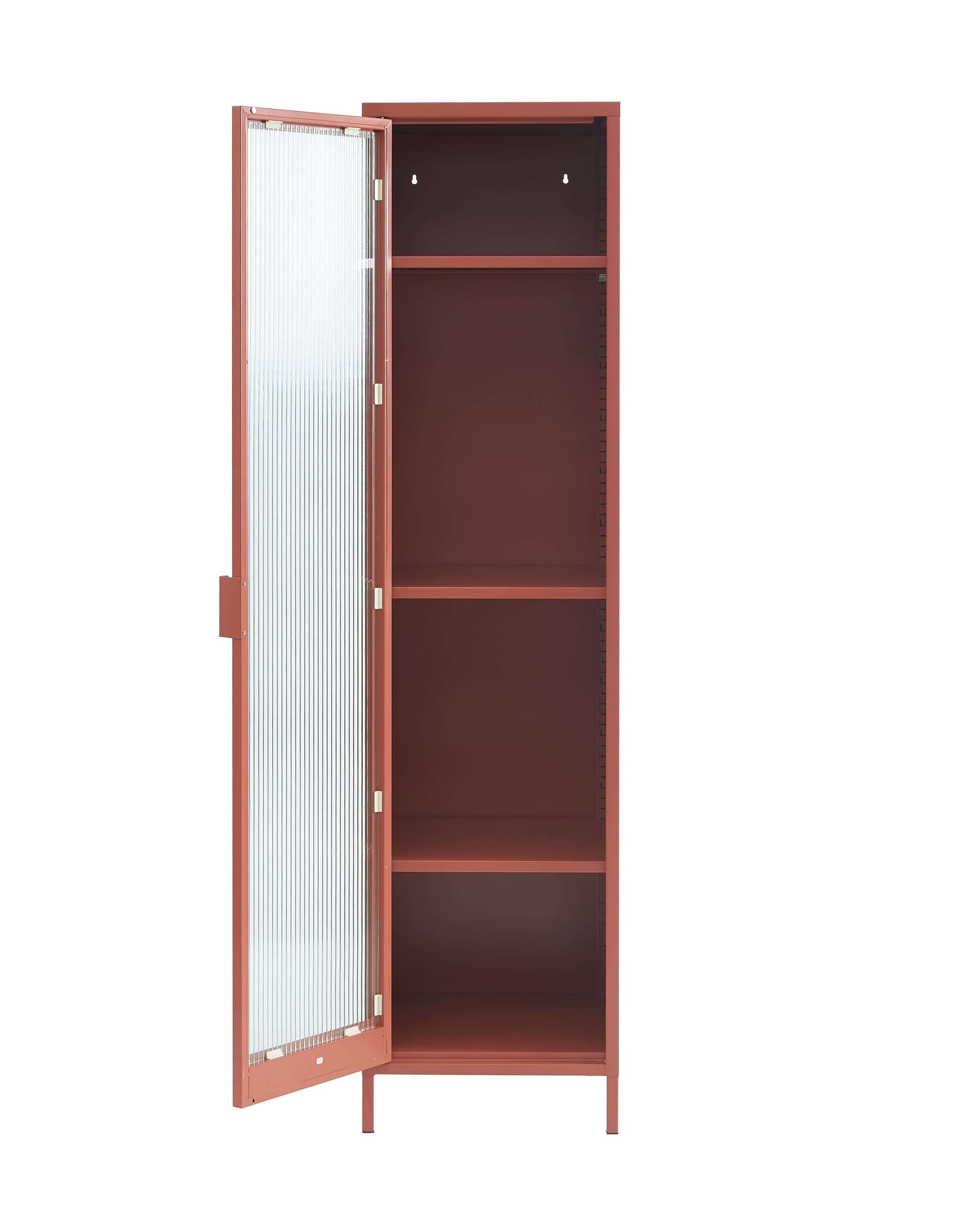 Design, ma anche funzionale, questo guardaroba fa centro. Si innamorerà del suo design industriale e del suo tocco chic con la sua porta in vetro scanalato, che le conferisce eleganza e trasparenza.